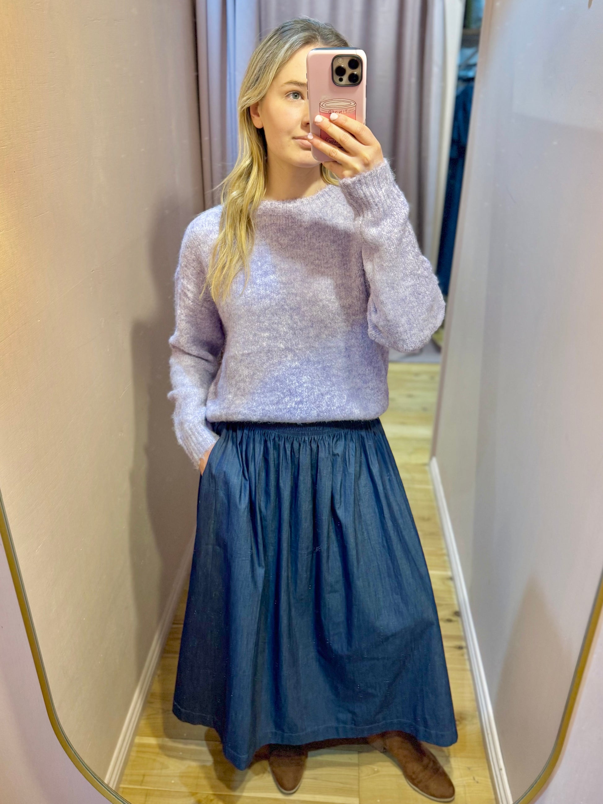 The elasticated waistband gives a relaxed fit which is perfect for tucking in knitwear or tees, while the full gathered skirt falls beautifully without feeling fussy. Of course, she has pockets because we know that’s non-negotiable.