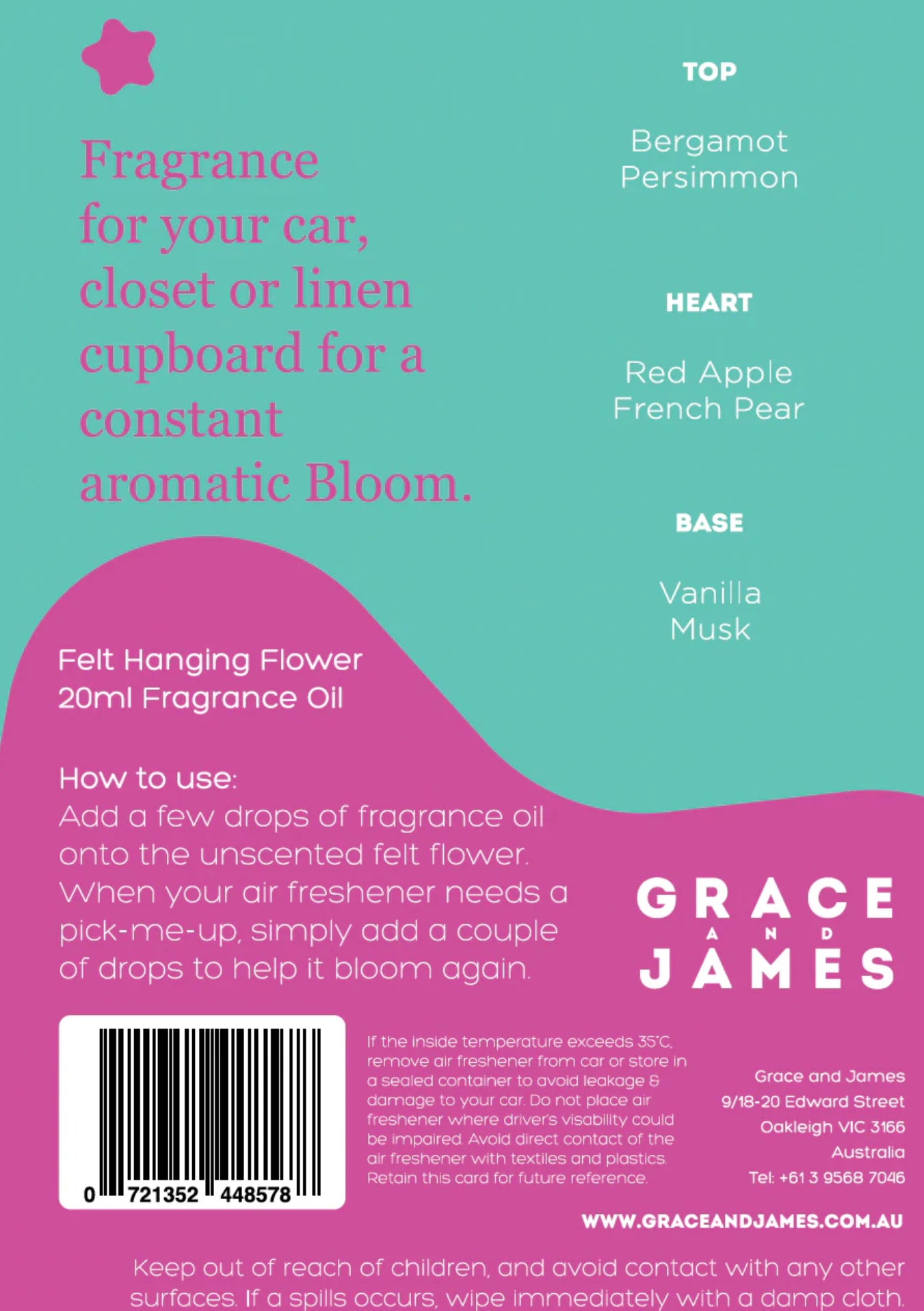 Fragrance for your car, closet or linen cupboard for a constant aromatic Bloom.